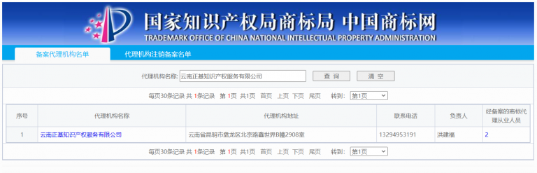 云南商標注冊公司代理資質查詢地址:https://wssq.sbj.cnipa.gov.cn:9443/tmsve/agentInfo_getAgentDljg.xhtml 輸入:云南正基知識產權服務有限公司
